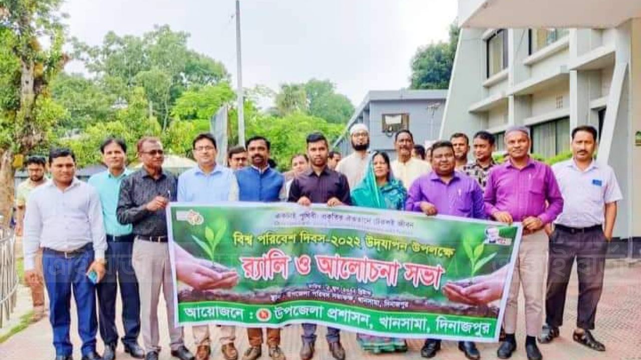 এইটাই পৃথিবীঃ প্রকৃতির ঐকতানে টেকশই জীবন এই স্লোগানকে সামনে রেখে বিশ্ব পরিবেশ দিবস-২০২২ উদযাপন উপলক্ষে র্যালী ও আলোচনা সভা অনুষ্ঠিত হয়েছে দিনাজপুরের খানসামা উপজেলায়।