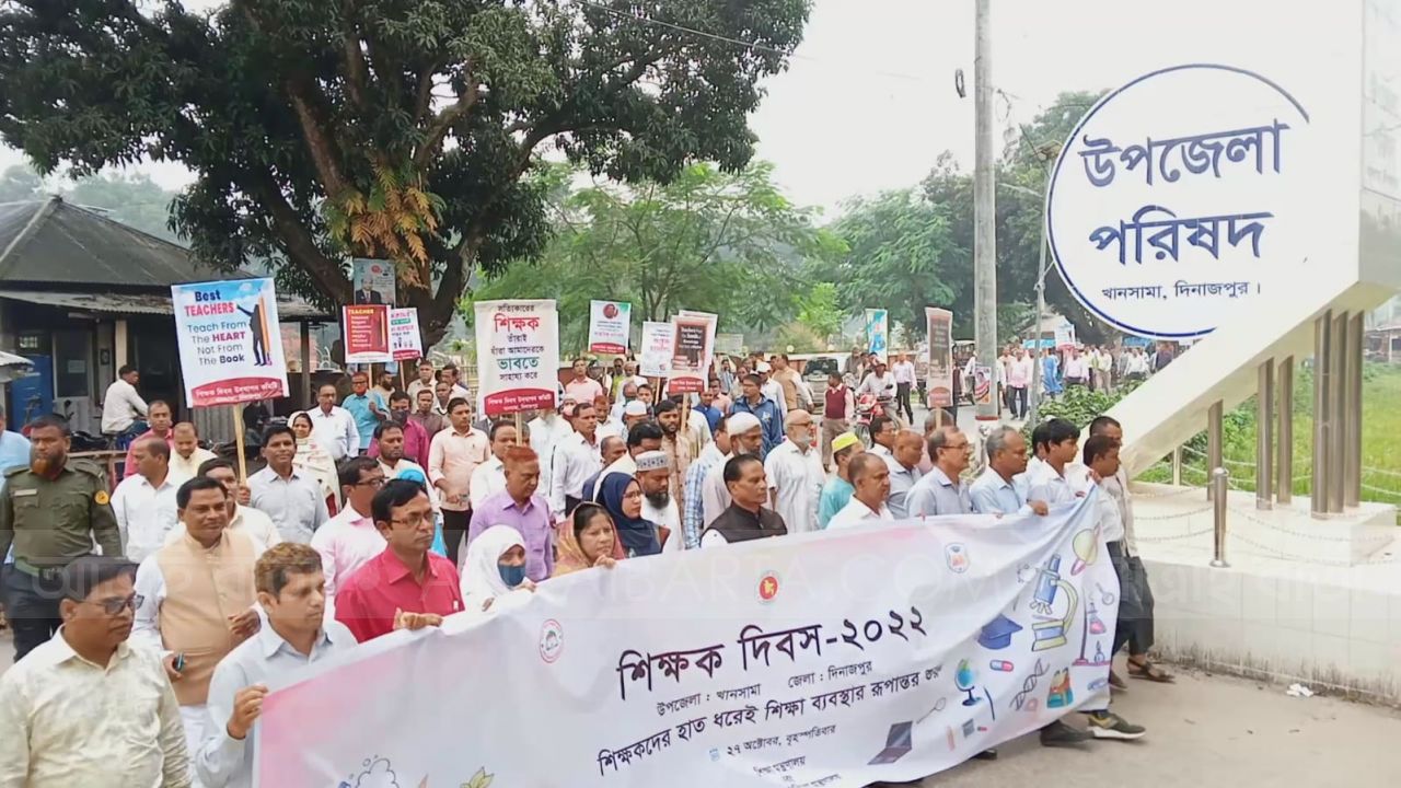 দিবসটি উপলক্ষে বৃহস্পতিবার (২৭ অক্টোবর) সকালে উপজেলা শিক্ষক দিবস-২০২২ উদযাপন কমিটির আয়োজনে র্যালি ও আলোচনা সভা হয়। র্যালিটি উপজেলা পরিষদ চত্ত্বর থেকে শুরু করে উপজেলার প্রধান প্রধান সড়ক প্রদক্ষিণ করে পুনরায় উপজেলা পরিষদের চত্ত্বরে এসে শেষ হয়।