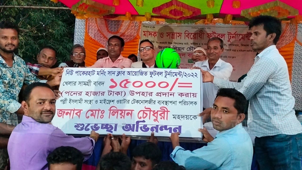 সোমবার (০৭ নভেম্বর) বিকেলে উপজেলার নিউ পাকেরহাট উচ্চ বিদ্যালয় মাঠে নিউ পাকেরহাট মর্নিং সান ক্লাবের আয়োজনে প্রধান অতিথি হিসেবে পল্লী ইসলামী সংস্থা ও মাই ফ্রেস ওয়াটার টেকনোলজির ব্যবস্থাপনা পরিচালক মোঃ লিয়ন চৌধুরী খেলার উদ্বোধন করেন এবং খেলা শেষে আয়োজক কমিটি তাকে ক্রেস্ট প্রদান করেন।