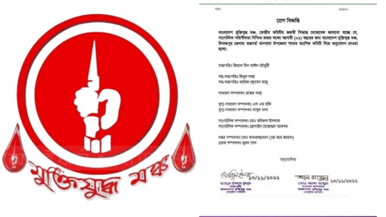মুক্তিযুদ্ধ মঞ্চ খানসামা উপজেলা শাখার কমিটি ঘোষণা; সভাপতি জিয়াদ ও সম্পাদক ভাস্কর