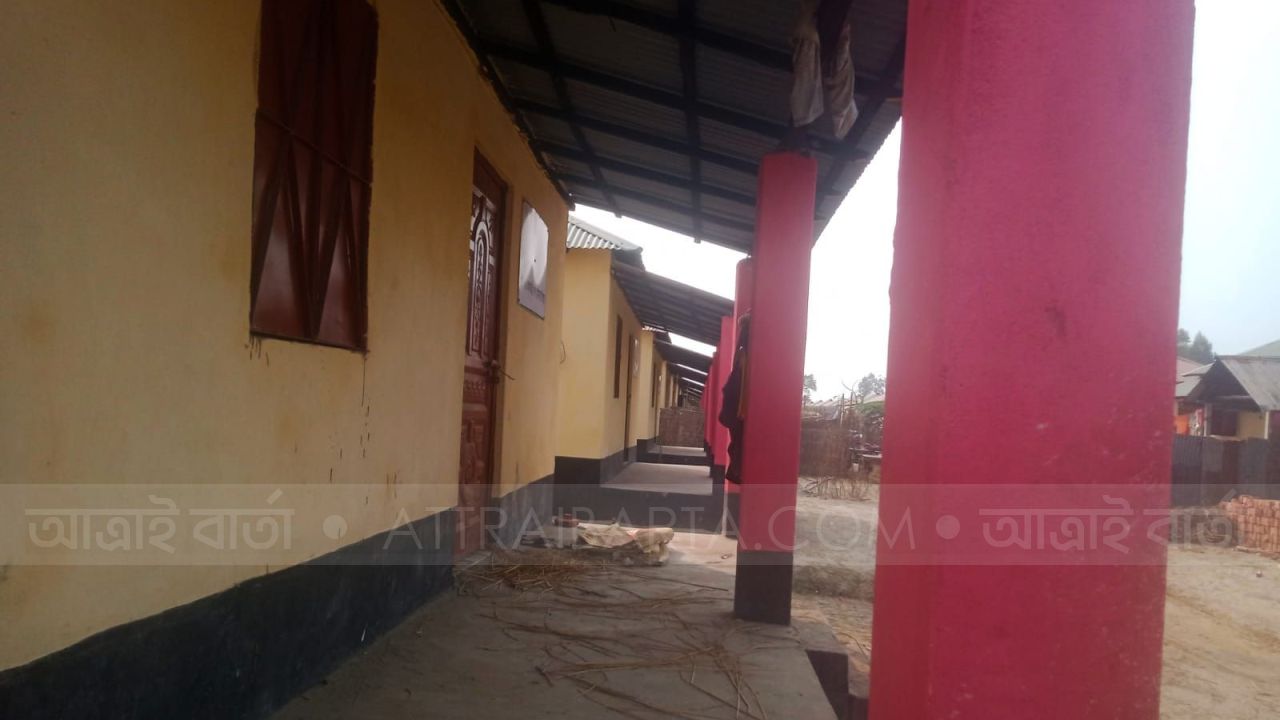 ৩ নং আঙ্গার পাড়া ইউনিয়নের ছাতিয়ান গড় গ্রামের কৈ পাড়া নামক এলাকায় প্রধানমন্ত্রীর উপহারের আশ্রয়ণ প্রকল্পের ২০ টি ঘরের মধ্যে ৯ টি ঘরে বসবাস করে লোকজন আর বাকি ১১ টি ঘরে ঝুলছে তালা আর ঘরের সামনে বারান্দায় শুকানো হচ্ছে এখন গোবর ও খড়কুট।