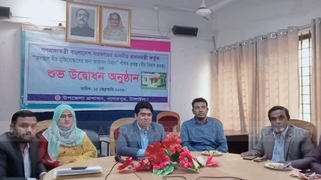 টাঙ্গাইল নাগরপুরে উপজেলায় অসচ্ছল বীরমুক্তিযোদ্ধাদের জন্য নির্মিত আবাসন প্রকল্পের উপজেলা ১৮ টি বীর নিবাস উদ্বোধন করা হয়েছে। বুধবার (১৫ ফেব্রুয়ারী) সকালে উপজেলা পরিষদ সম্মেলন কক্ষে প্রধানমন্ত্রী শেখ হাসিনার পক্ষে চাবি হস্তান্তর করেন নাগরপুর উপজেলা নির্বাহী অফিসার ওয়াহিদুজ্জামান। এসময় উপস্থিত ছিলেন নাগরপুর উপজেলা পরিষদের (মহিলা) ভাইস চেয়ারম্যান ছামিনা বেগম শিপ্রা, উপজেলা সহকারী প্রোগ্রামার হাবিবুর রহমান, সাবেক বীর মুক্তিযোদ্ধা কমান্ডার মোঃ সুজায়েত হোসেন, বীর মুক্তিযোদ্ধা মোকসেদ আলী , বীর মুক্তিযোদ্ধা গোলাম হোসেন ছানা, অসচ্ছল মুক্তিযোদ্ধাগন, নাগরপুর উপজেলা প্রকল্প বাস্তবায়ন কর্মকর্তা মো. আবু-বকর সিদ্দীকি বলেন, ‘অসচ্ছল বীর মুক্তিযোদ্ধাদের জন্য উপজেলার ১২ টি ইউনিয়নে ৫৪টি বীর নিবাস মধ্যে ১৮টি হস্তান্তর করা হয়েছে ও ৩৬টি নির্মাণ কাজ চলমান রয়েছে। প্রতিটি ঘরের আয়তন ৭৩২ বর্গফুট। প্রতিটি একতলা ঘরের নির্মাণের প্রাক্কলিত মূল্য ধরা হয়েছে ১৪ লাখ ১০ হাজার ৩৮২ টাকা। এ বিষয়ে ইউএনও মোঃ ওয়াহিদুজ্জামান জানান, বীর মুক্তিযোদ্ধারা জাতির শ্রেষ্ঠ সন্তান মাননীয় প্রধানমন্ত্রী অসচ্ছল মুক্তিযোদ্ধাদের কথা ভেবে তাদের জন্য পাকা ঘর নির্মাণ প্রকল্প গ্রহণ করেছেন।