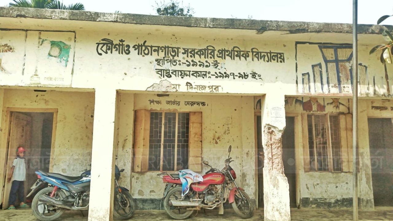 খানসামায় জরাজীর্ণ ভবনে পাঠদান আতঙ্কে শিক্ষক-শিক্ষার্থী