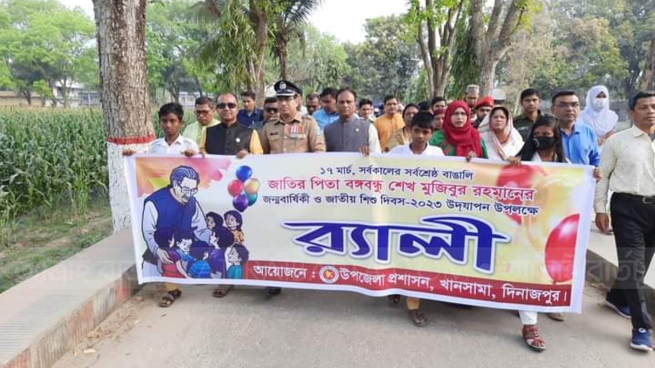 নানা আয়োজনের মধ্যে দিনাজপুরের খানসামায় হাজার বছরের শ্রেষ্ঠ বাঙালি জাতির জনক বঙ্গবন্ধু শেখ মুজিবুর রহমানের ১০৩ তম জন্মদিন ও জাতীয় শিশু দিবস পালিত।