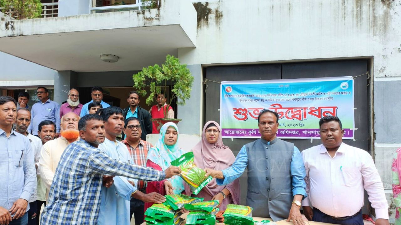 দিনাজপুরের খানসামা উপজেলায় ক্ষুদ্র ও প্রান্তিক কৃষকদের মাঝে বিনামূল্যে বীজ ও সার বিতরণ কার্যক্রমের উদ্বোধন করা হয়েছে।