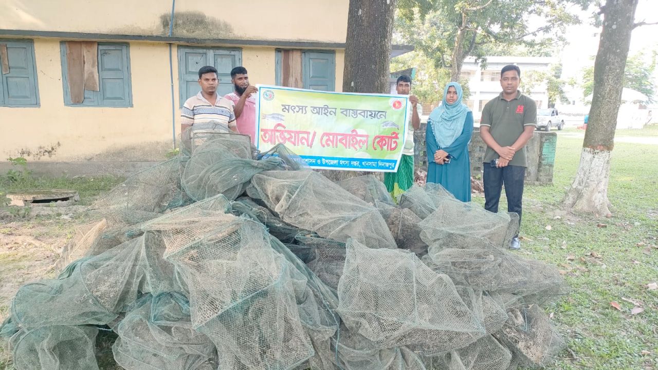 খানসামা উপজেলা মৎস্য কর্মকর্তা শাম্মী আক্তার বলেন, আমরা সর্বমোট ১২টি মাছ শিকারের জাল জব্দ করেছি। এসব জালের দুরত্ব ৭২০ মিটার। মৎস সংরক্ষণে আমরা নিয়মিত এমন অভিযান পরিচালনা করছি।