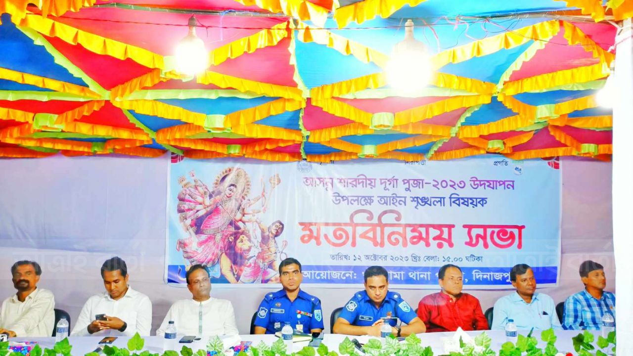 দিনাজপুরের খানসামা উপজেলায় আসন্ন শারদীয় দূর্গা পূজা-২০২৩ উপলক্ষে মন্দির ভিত্তিক পূজা কমিটির সাথে আইন শৃঙ্খলা বিষয়ক মতবিনিময় সভা অনুষ্ঠিত হয়েছে।
