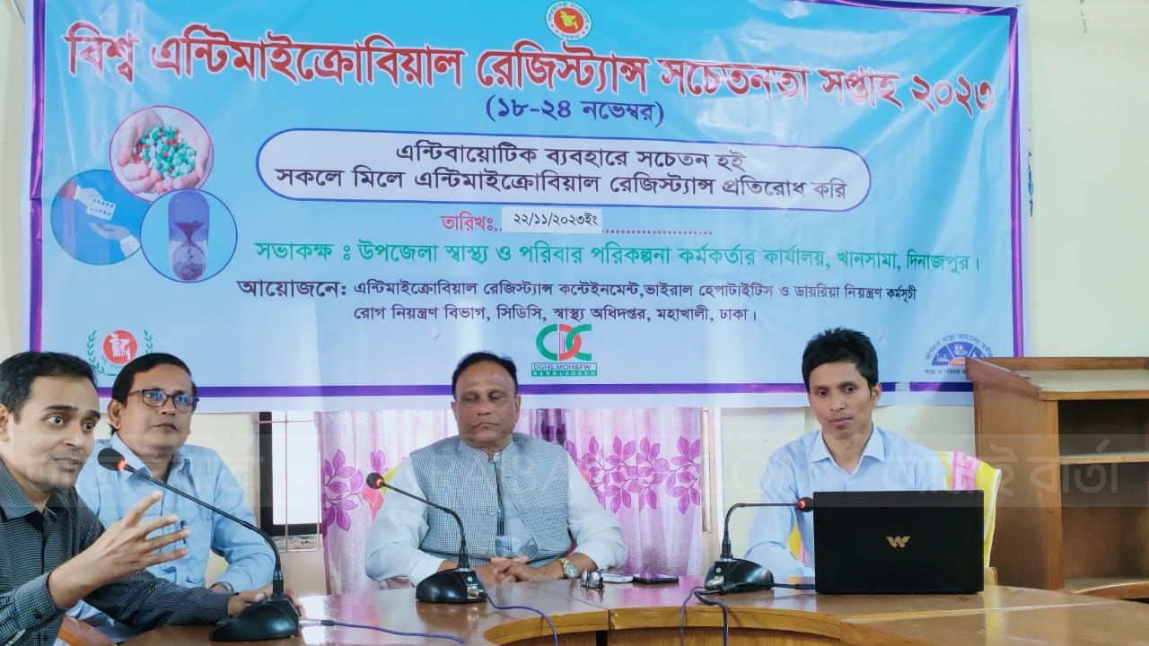 ‘এন্টিবায়োটিক ব্যবহারে সচেতন হই, সকলে মিলে এন্টিমাইক্রোবিয়াল রেজিস্ট্যান্স প্রতিরোধ করি’ এ স্লোগানের মধ্য দিয়ে দিনাজপুরের খানসামা উপজেলা স্বাস্থ্য কমপ্লেক্স বিশ্ব এন্টিমাইক্রোবিয়াল সচেতনতা সপ্তাহ (১৮ থেকে ২৪ নভেম্বর) উদযাপন করা হয়।